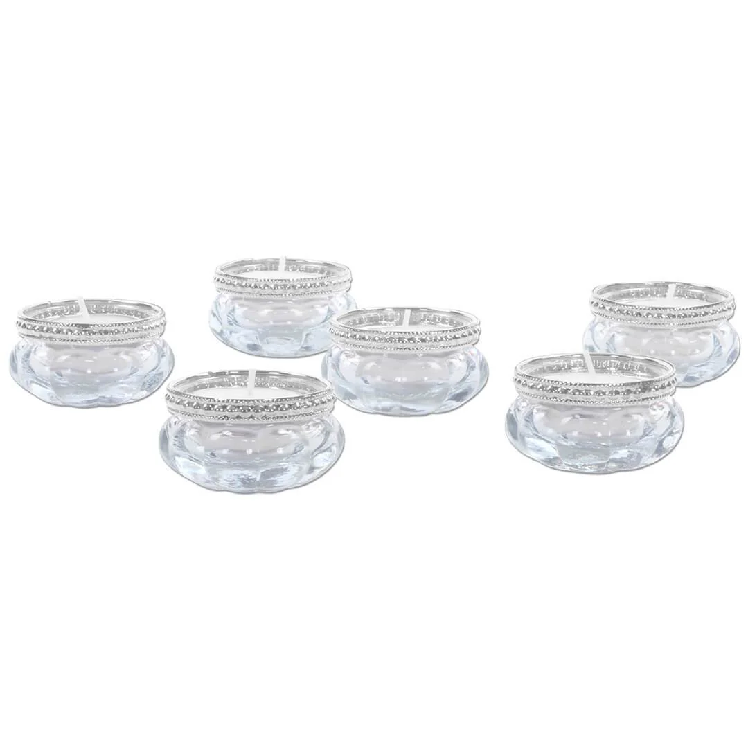 - Sold in a set of 6 or bulk pack set of 24. This ideal pack size is perfect to scatter across each table. The petite candle holders feature a lovely silver beaded rim.
