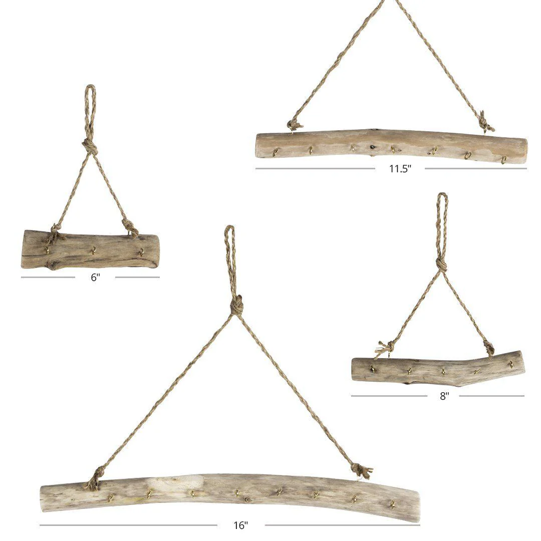 - Size. Set of 4 real driftwood jewelry holders in 16 inch, 11.5 inch, 8 inch and 6 inch long. Sizes are approximate as this is natural wood, lengths will vary.