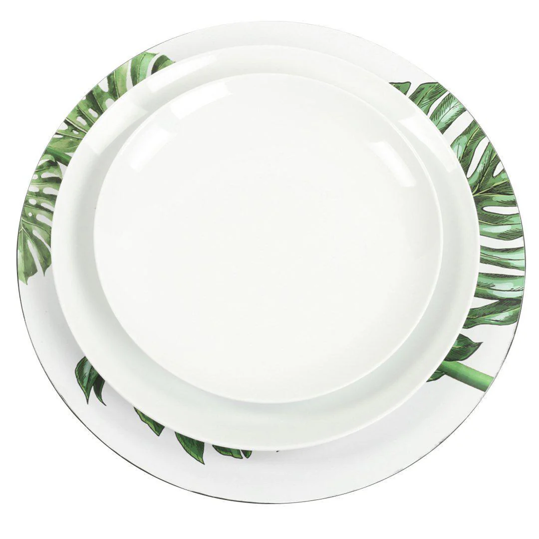 - 4 plates per pack. Add luxurious touch to your table with our elegant tropical charger plate.
