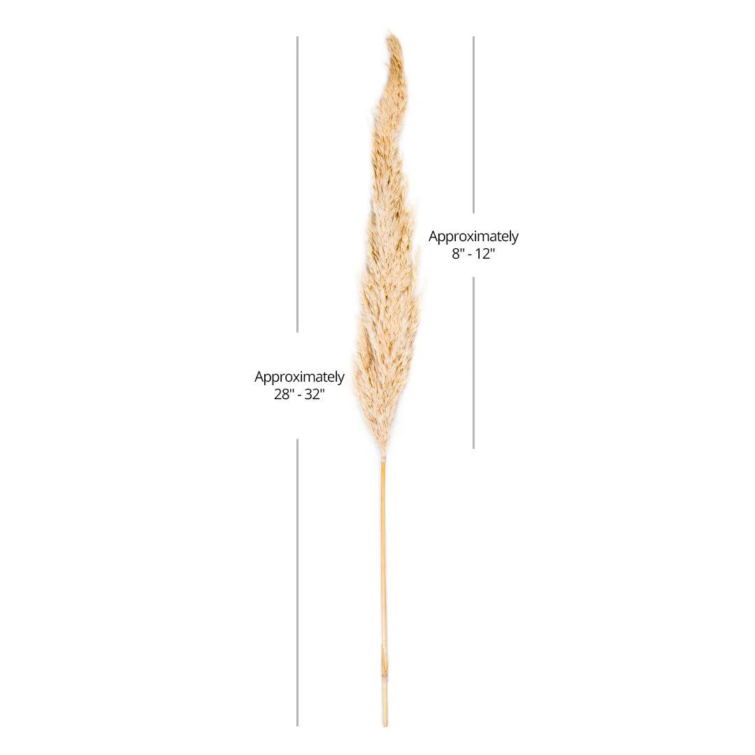 - Real preserved pampas grass plume stems can measure 28 to 32 inches